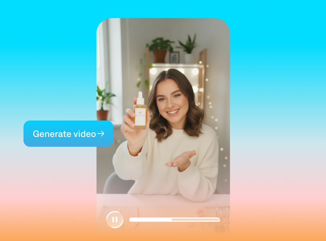 Authentic moments make people stop scrolling. AI-generated UGC videos capture that same natural, relatable feel, but help you move faster because you can generate and edit videos faster than with traditional production schedules.